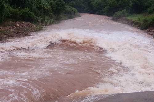 | Cầu tràn Cổ Nhựa thuộc tỉnh lộ 330 (xã Lương Mông, huyện Ba Chẽ) bị sạt mái ta lũy hai bên đầu cầu, nước lũ tràn qua mặt cầu trên 1m |