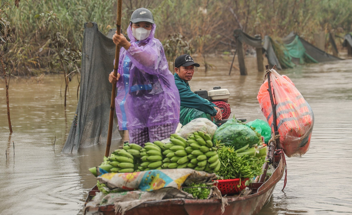 Bình thường người dân chỉ cần 10 - 15 phút để mang nông sản ra chợ bán, nhưng gần 1 tháng nay họ mất cả tiếng đồng hồ để chuẩn bị. "Khu vực này cứ mưa to là ngập nên gia đình tôi đã mua hẳn chiếc thuyền máy để hàng ngày vận chuyển nông sản cung cấp cho các chợ, nhà hàng tại nội đô", người dân ở bãi giữa sông Hồng chia sẻ.