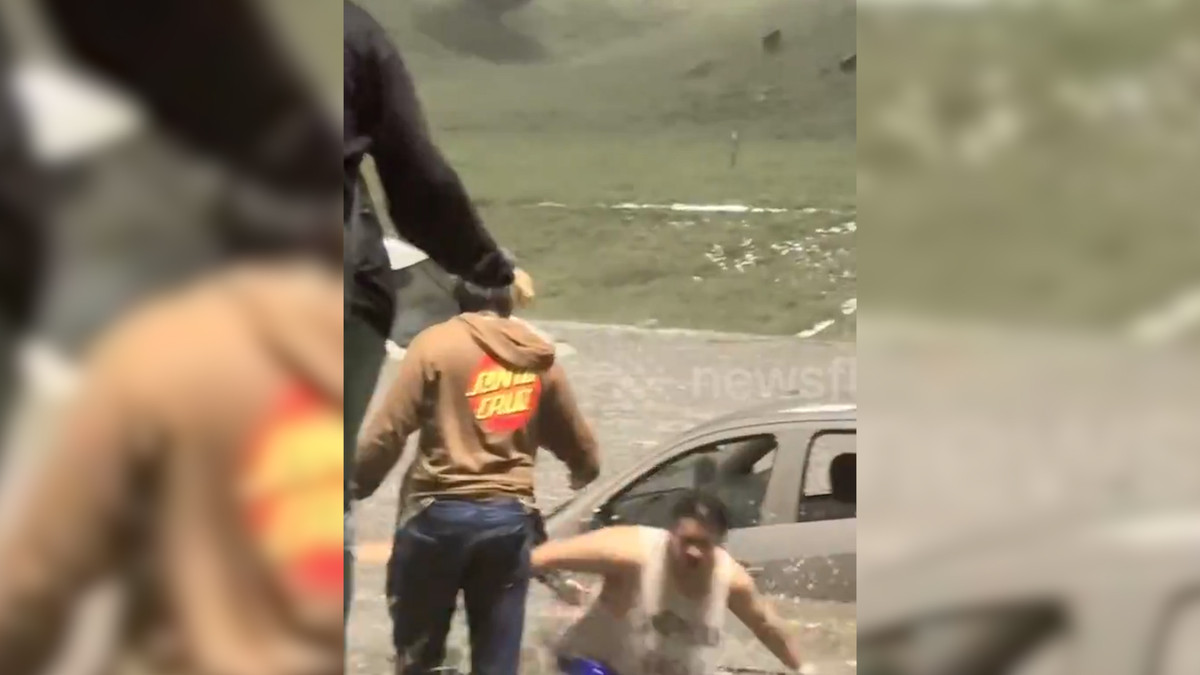 Nước lũ nhấn chìm ô tô trên đại lộ, tài xế kịp thoát ra ngoài