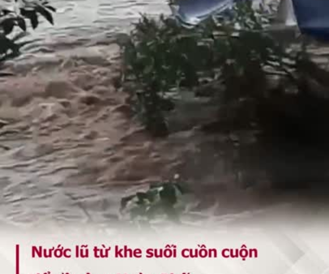 Nước lũ từ khe suối cuồn cuộn đổ về sông Ngàn Phố (huyện Hương Sơn, Hà Tĩnh)