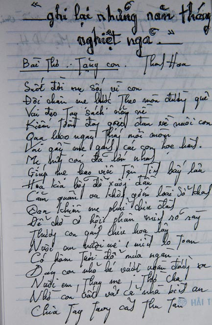 Bà lật giở từng trang của cuốn sổ ghi chép đã ố vàng rồi rơi lệ. Từng nét chữ, từng vần thơ, hay từng tiêu đề của mỗi bài thơ khiến bà trở lại với quãng đời đầy tủi cực.