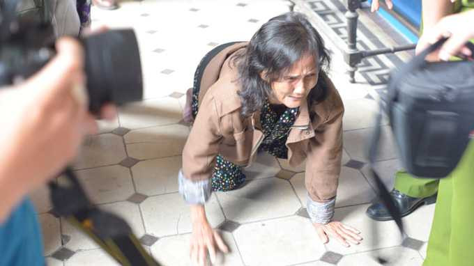 | Mẹ của bị cáo Hồ Duy Trúc suy sụp sau khi nghe tòa tuyên án tử hình Trúc. Ảnh: Quang Định - TTO |