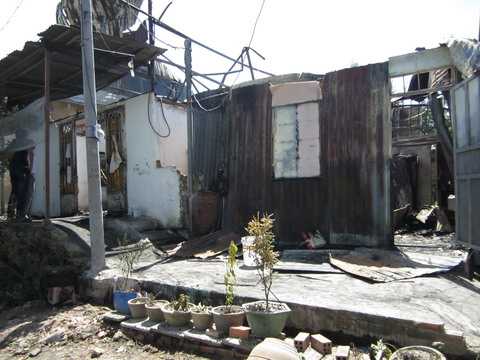 Những căn nhà bị cháy được xây dựng sơ sài. Có nhà lợp tôn có nhà lợp lá, là nơi trú ngụ của những gia đình lao động nghèo vất vả trong mưu sinh.