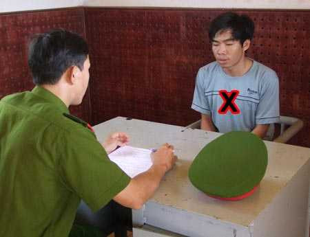 | Lê Đức Tỉnh (X) tại cơ quan CSĐT. |