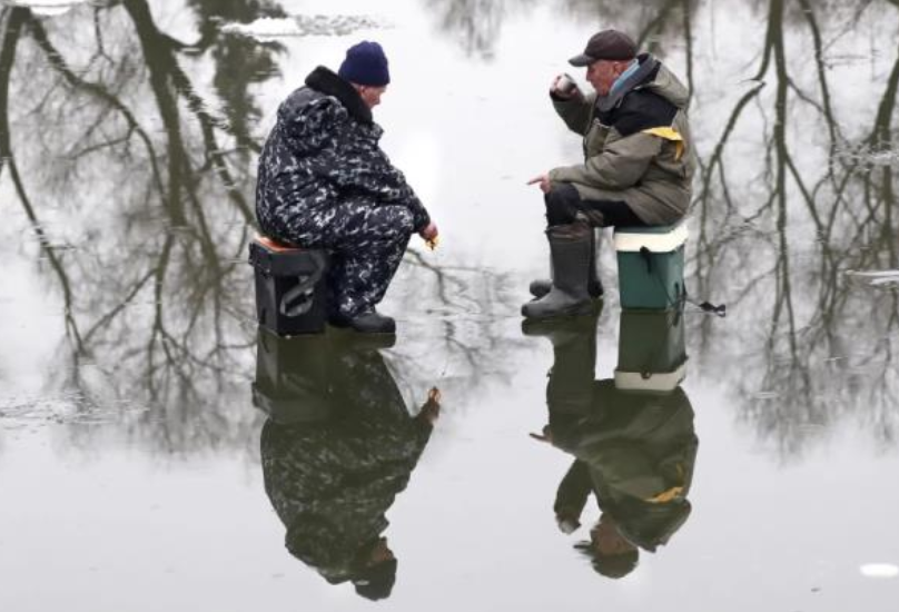 2 người đàn ông câu cá trên một hồ băng ở Nga. (Ảnh: EPA)