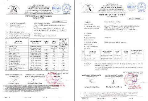 | Kết quả kiểm nghiệm nước sạch tại KĐT Dương Nội. |