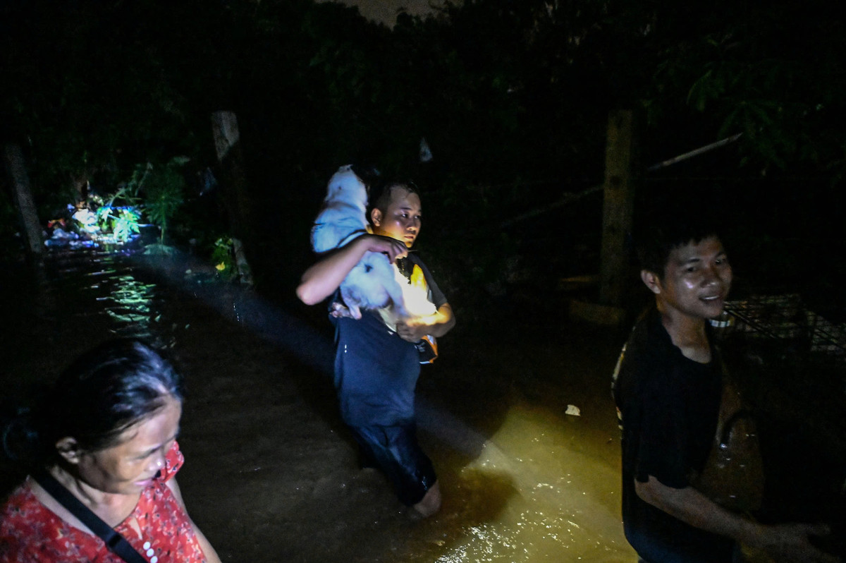 Các gia đình sáng đèn giữa đêm để dọn đồ tháo chạy khỏi biển nước.