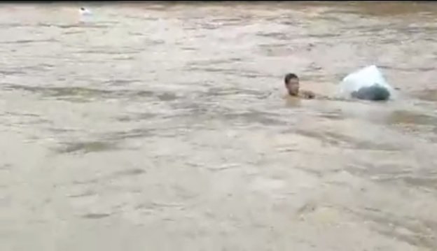 Clip: Nước suối lên cao, người dân Huổi Hạ vẫn phải bơi qua suối (Nguồn: Trưởng bản Huổi Hạ Vừ Bình Giống cung cấp)