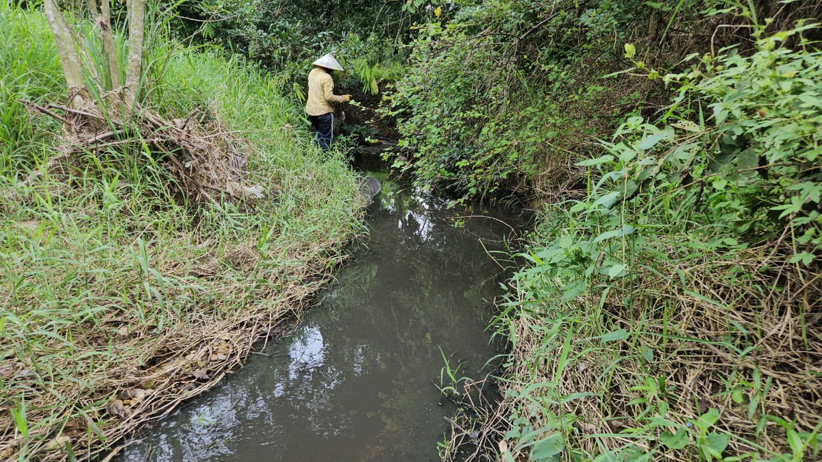 Đường dẫn từ bể biogas của trại heo ra con suối.