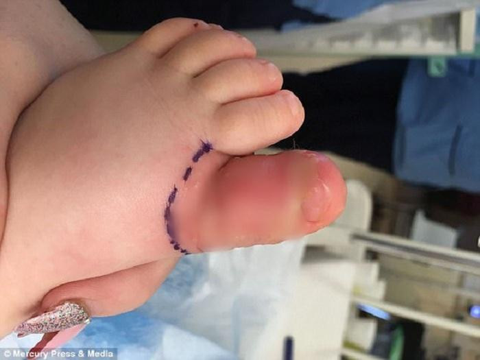 Ngón chân cái của bé Aria McCart ở Scotland bị cắt bỏ phần thịt vì hoại tử