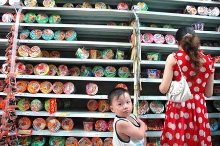 | Gian hàng mì ăn liền tại một siêu thị ở Bắc Kinh |