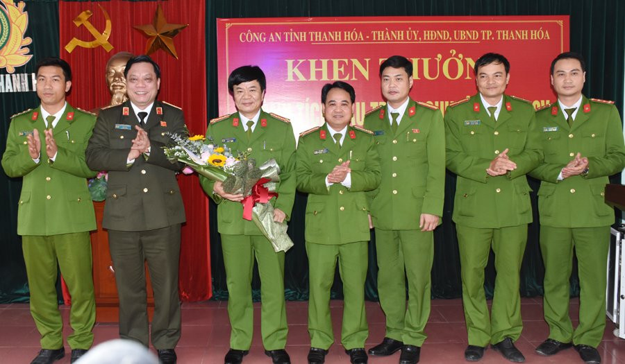 Công an Thanh Hóa khen thưởng cho các cá nhân trong vụ việc triệt phá tổ chức tín dụng đen núp bóng công ty vận tải.
