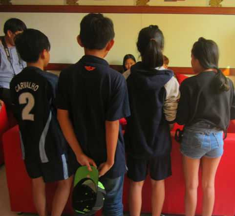 | Các em học sinh lớp 6 bị phát hiện đang hút shisha trong quán cà phê. |