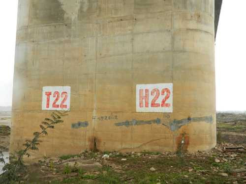 Trụ T22 là trụ chính nằm ở vị trí giữa sông Hồng, vết nứt được xác định kéo dọc thân trụ từ mép đất lên trên phía dầm khoảng 20m, phía dưới vết nứt khoảng 1m có rêu và nước rỉ ra. Cũng trên trụ T22 đã xuất nhiều các vết nứt ngang khác, với chiều dài khoảng 3-4m.