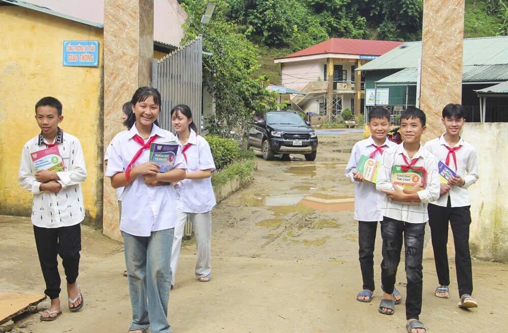 Học sinh trường Phổ thông Dân tộc bán trú THCS Chiềng Sơ (xã Mường Luân, tỉnh Điện Biên) vui mừng khi được tặng sách giáo khoa mới.