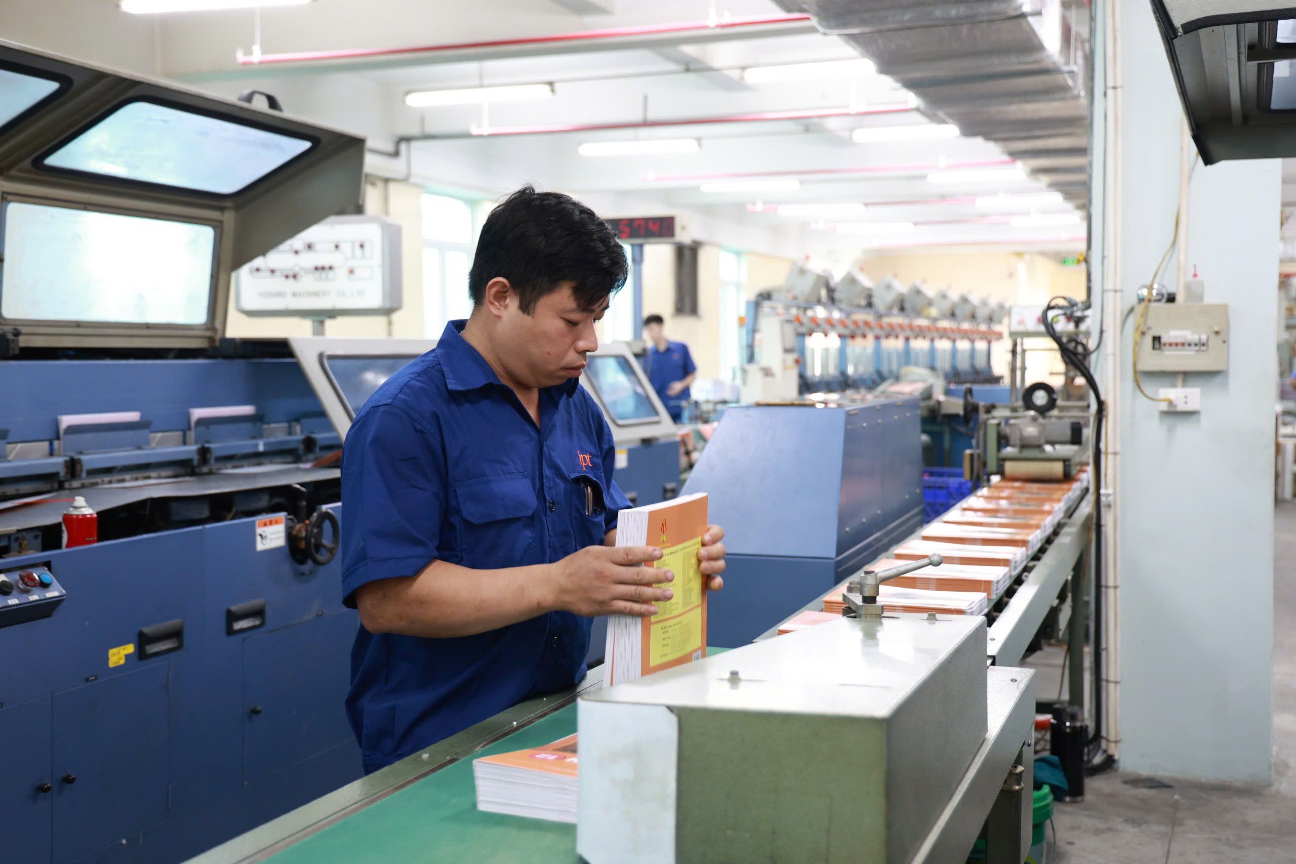 Dù áp dụng máy móc công nghệ cao nhưng công nhân xưởng in vẫn phải kiểm tra kỹ càng bằng mắt thường trước khi chuyển sang các khâu tiếp theo.