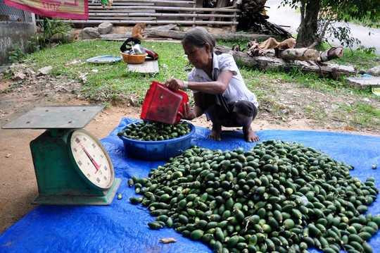 | Người dân hái cau non bán cho thương lái đưa sang Trung Quốc |