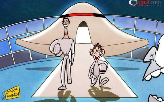 Cây biếm bóng đá nổi tiếng Omar Momani từng vẽ một bức tranh, trong đó Ronaldo và Messi tươi cười bước xuống từ đĩa bay.