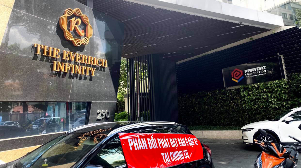 Ngày 29/8, hàng chục cư dân sống tại chung cư The EverRich Infinity (đường An Dương Vương, Quận 5, TP.HCM) tập trung trước sảnh chung cư, căng băng rôn phản đối chủ đầu tư là Công ty Cổ phần Phát triển bất động sản Phát Đạt (Công ty Phát Đạt) vì nhiều mập mờ trong công tác quản lý, vận hành.