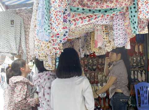 | Nắng nóng, các mặt hàng như áo chống nắng với giá phải chăng khá đắt hàng. |