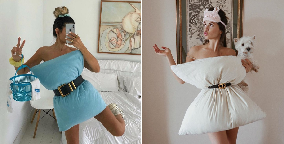 Mới đây, mạng xã hội Instagram phát sốt với trào lưu mới kèm hashtag #pillowchallenge. Các cô gái nhân dịp cách ly xã hội sáng tạo những bộ "outfit trong nhà" vừa sang chảnh cá tính, vừa đáng yêu. (Ảnh: tuanatugceayazz)