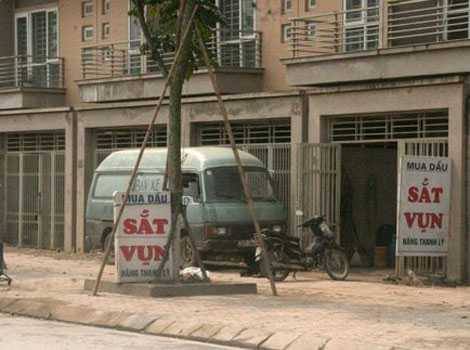 Tại khu đô thị mới Văn Phú, ngay mặt đường cũng xuất hiện một nhà liền kề đồng nát, ngay cửa đã đề tấm biển “mua dầu, sắt vụn hàng thanh lý”. Xung quanh khu vực này, nhiều dự án lớn đang xây dựng đó chính là cơ hội kiếm lời của họ.