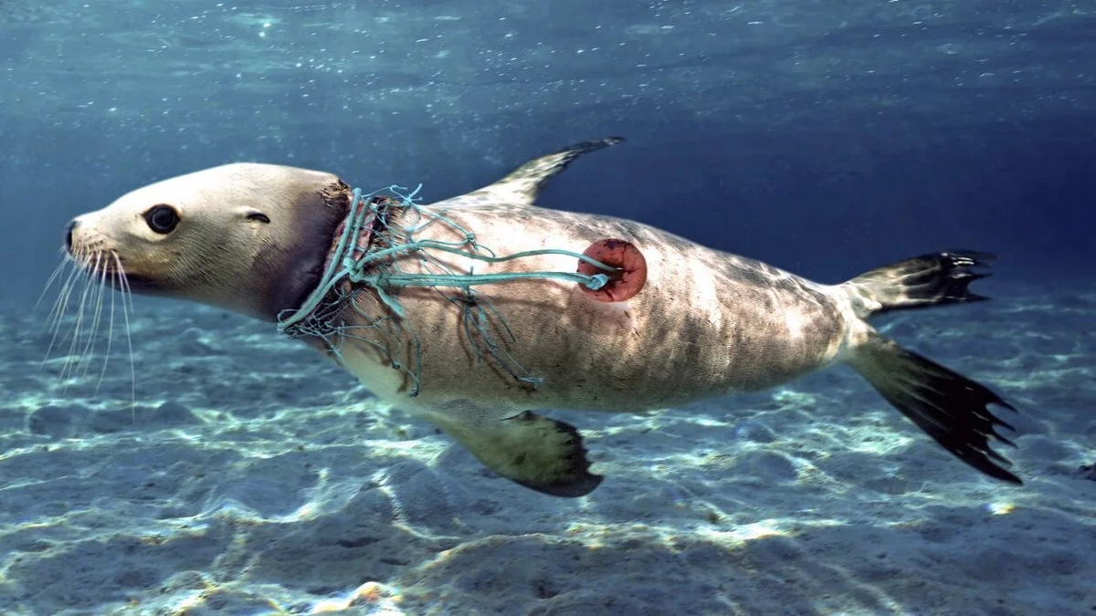 Những sợi dây nhựa con người vô tình vứt bỏ vào sọt rác, đến một ngày, chúng trôi dạt ra biển và vướng vào sinh vật biển theo cách này.