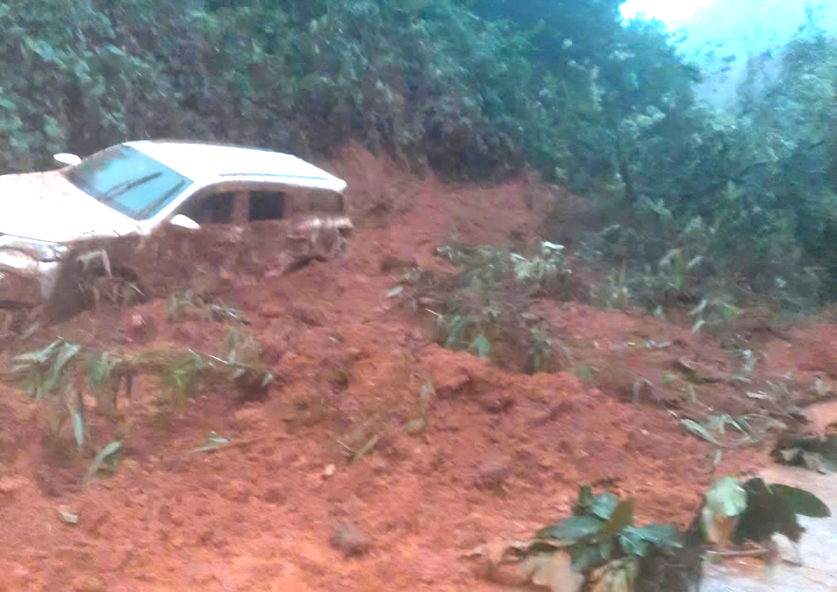 Vụ sạt lở đã vùi lấp một ô tô con màu trắng 7 chỗ.