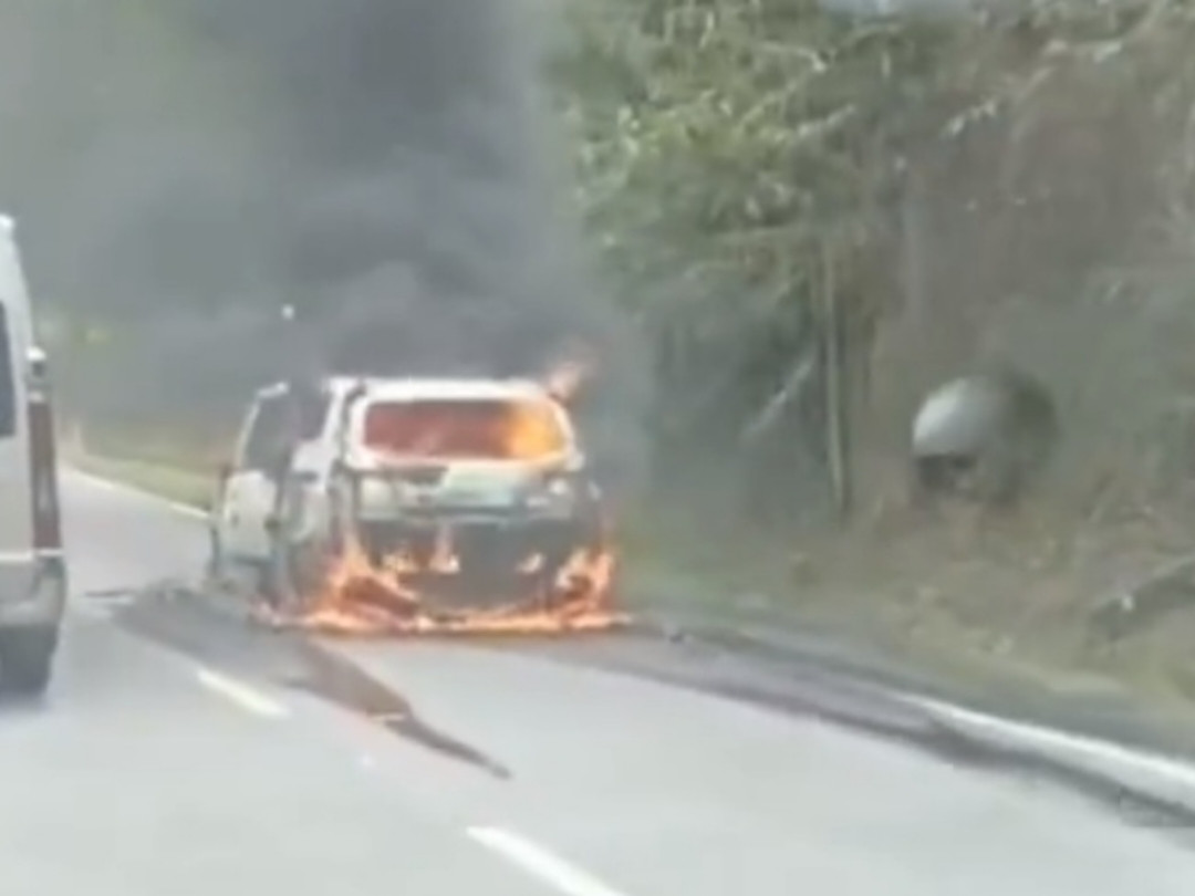 Chiếc xe bốc cháy ngùn ngụt, cả gia đình thoát nạn