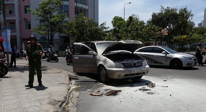 Lực lượng CSGT TP Nha Trang đang điều tiết giao thông ở khu vực này đã nhanh chóng có mặt, dùng bình chữa cháy dập lửa nên đám cháy được khống chế ngay sau đó.
