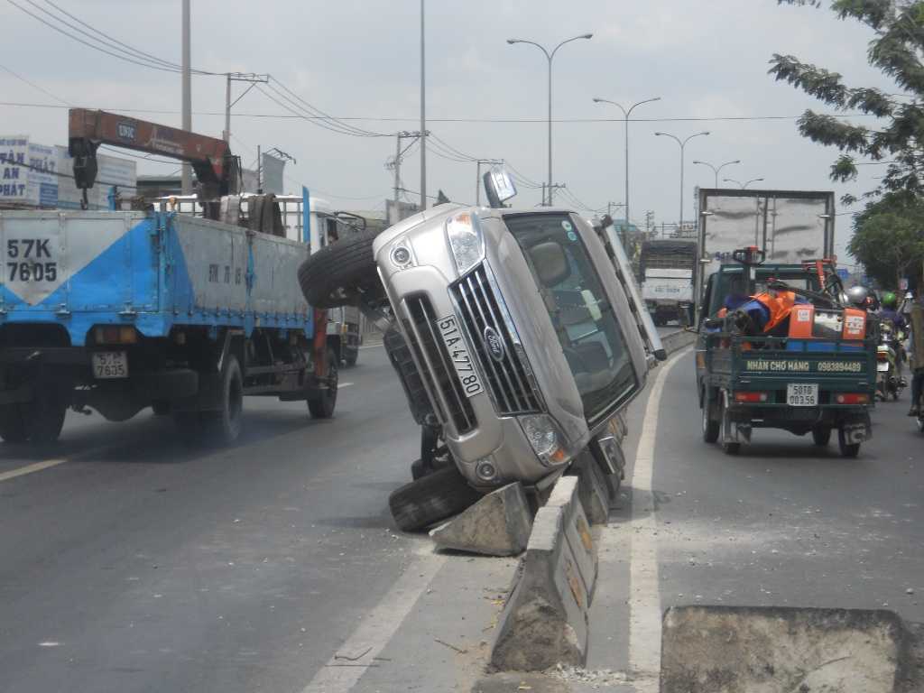 Khi lưu thông đến gần khu vực ngã tư Bà Điểm khoảng 500m, chiếc xe bất ngờ gặp mặt đường loang lổ dầu nhớt.