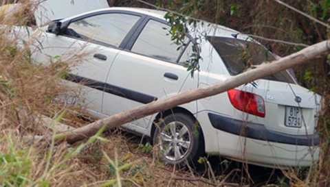 | Chiếc xe bị nằm gọn dưới mương lề đường |