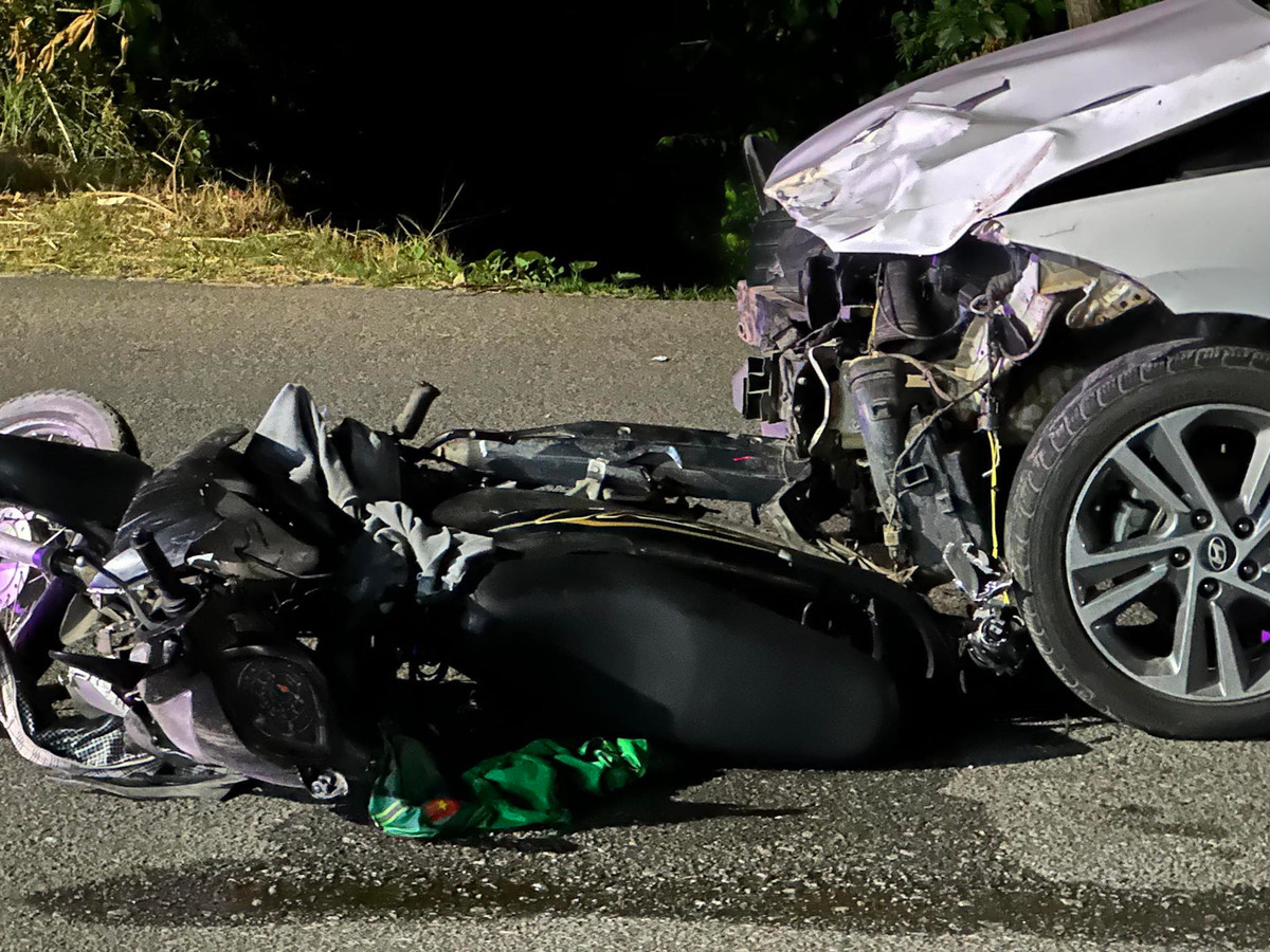 Sau đó, ô tô biển số Lào tiếp tục phi lên tông vào xe máy mang BKS: 75H1-70022 do anh P.V.X (SN 1985, trú thôn Phò An, xã Phú Dương) chở theo vợ là chị N.T.T.T (SN 1988) cùng 2 con là cháu P.N.T.V (SN 2016) và cháu P.V.P.T (SN 2019).