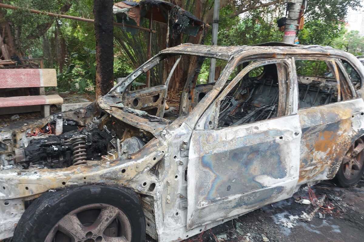 Chiếc xe BMW cháy còn trơ khung sắt.