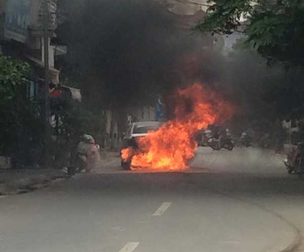 Một số nhân chứng cho biết, thời điểm trên, chiếc ô tô 4 chỗ hiệu Sonata, mang biển Hà Nội đang chạy theo hướng ra đường An Dương Vương thì bỗng nhiễn bốc cháy từ phần đuôi xe. Sau đó ngọn lửa bốc lớn ngùn ngụt.