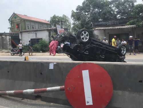 Ô tô chạy như bay rồi... lật ngửa trên quốc lộ 1A