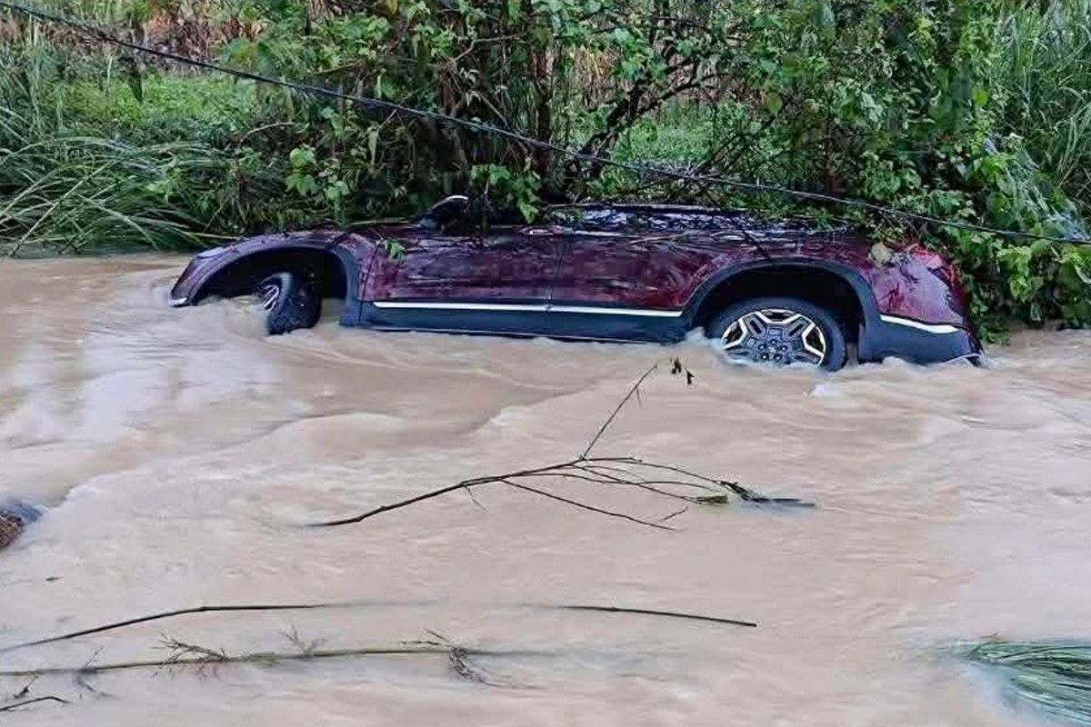 Tối 22/6, tại xã Thái Sơn, huyện Hàm Yên (Tuyên Quang), ô tô hiệu Hyundai Santa Fe chở theo 5 người, trong đó có cả trẻ em, bị nước lũ cuốn trôi.