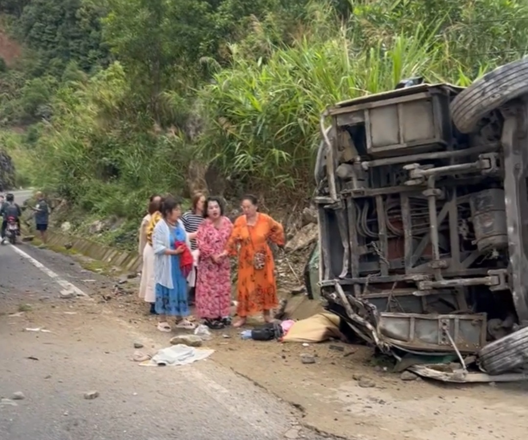Ôtô khách trượt một đoạn dài, phần đầu nghiêng về một bên đường, bị biến dạng. 23 người bị kẹt trong xe, hoảng loạn, kêu cứu. Nhiều người xây xước khắp cơ thể, đập cửa xe đi ra ngoài. Vụ tai nạn làm 4 người chết và nhiều người bị thương.