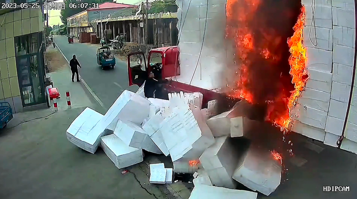 Ô tô chở xốp bốc cháy dữ dội ở Trung Quốc