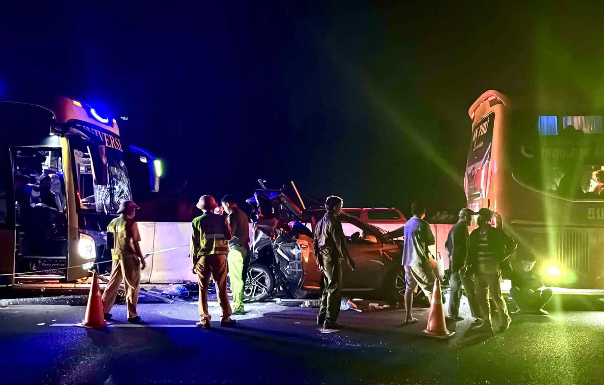Khoảng 21h ngày 1/2, trên cao tốc Phan Thiết - Dầu Giây (gần lối ra huyện Xuân Lộc, Đồng Nai) xảy ra vụ tai nạn giao thông giữa xe ô tô con và 2 xe khách khiến giao thông ùn tắc nghiêm trọng.