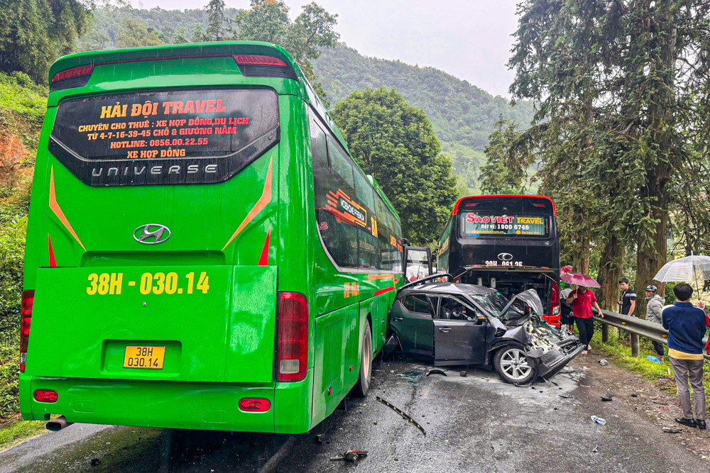 Khoảng 10h30 ngày 8/6, trên Quốc lộ 4D đoạn qua xã Trung Chải (thị xã Sa Pa, tỉnh Lào Cai) vụ tai nạn giao thông nghiêm trọng xảy ra giữa một xe ô tô con và hai xe ô tô khách, khiến giao thông trên tuyến đường lên thị xã Sa Pa bị ùn tắc kéo dài.