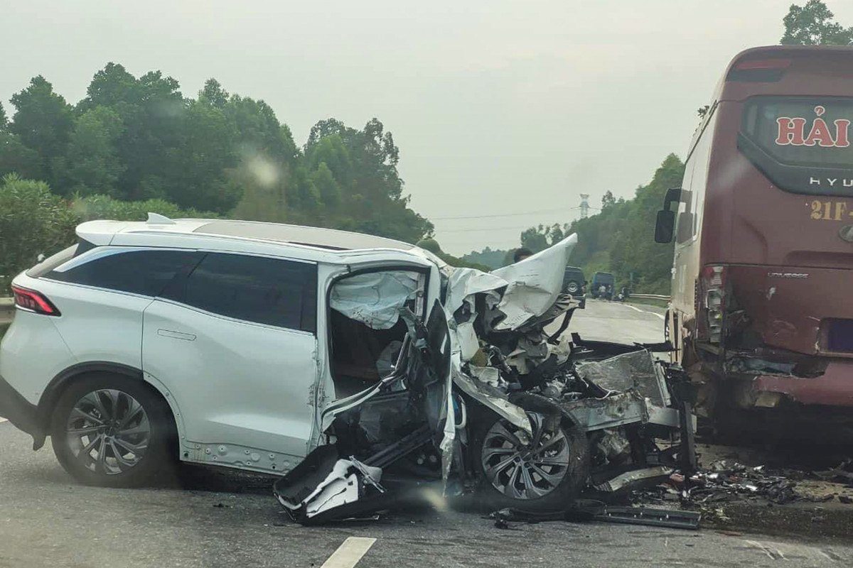 Lúc này, xe khách mang BKS: 21F - 000.84 đang chạy trên cao tốc Nội Bài - Lào Cai theo hướng đi Lào Cai thì bị ô tô con 5 chỗ tông vào đuôi xe.