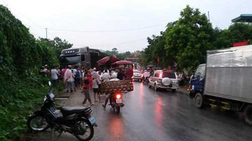 | Vụ tai nạn khiến giao thông qua khu vực gặp khó khăn. Ảnh: CTV. |