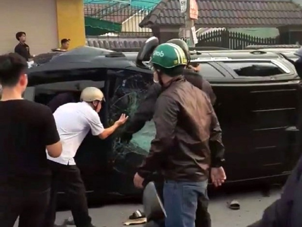 Sau đó, chiếc ô tô tiếp tục tông vào một số phương tiện giao thông lưu thông trên đường rồi lật nghiêng.
