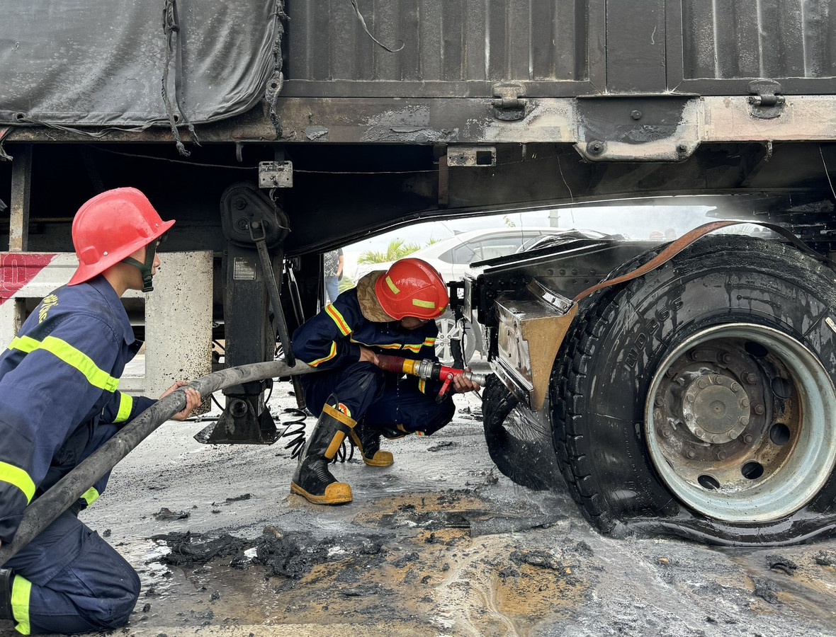 Đơn vị đã điều một xe chỉ huy, hai xe chữa cháy cùng 15 cán bộ chiến sĩ tới hiện trường, kịp thời dập tắt đám cháy trên xe ô tô đầu kéo.
