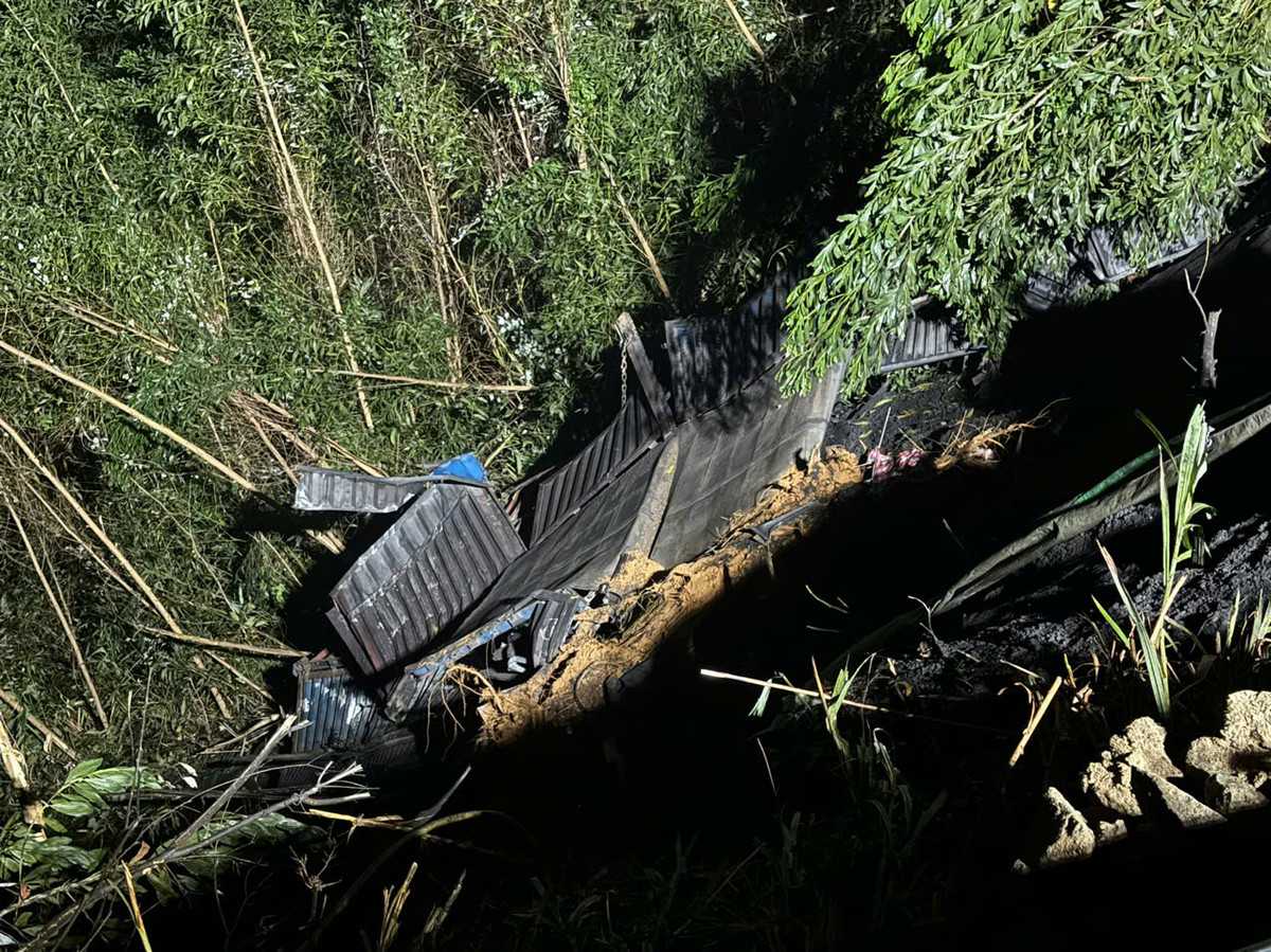 Hiện trường nơi chiếc ô tô đầu kéo lao xuống vực (Ảnh: LLCNCC)