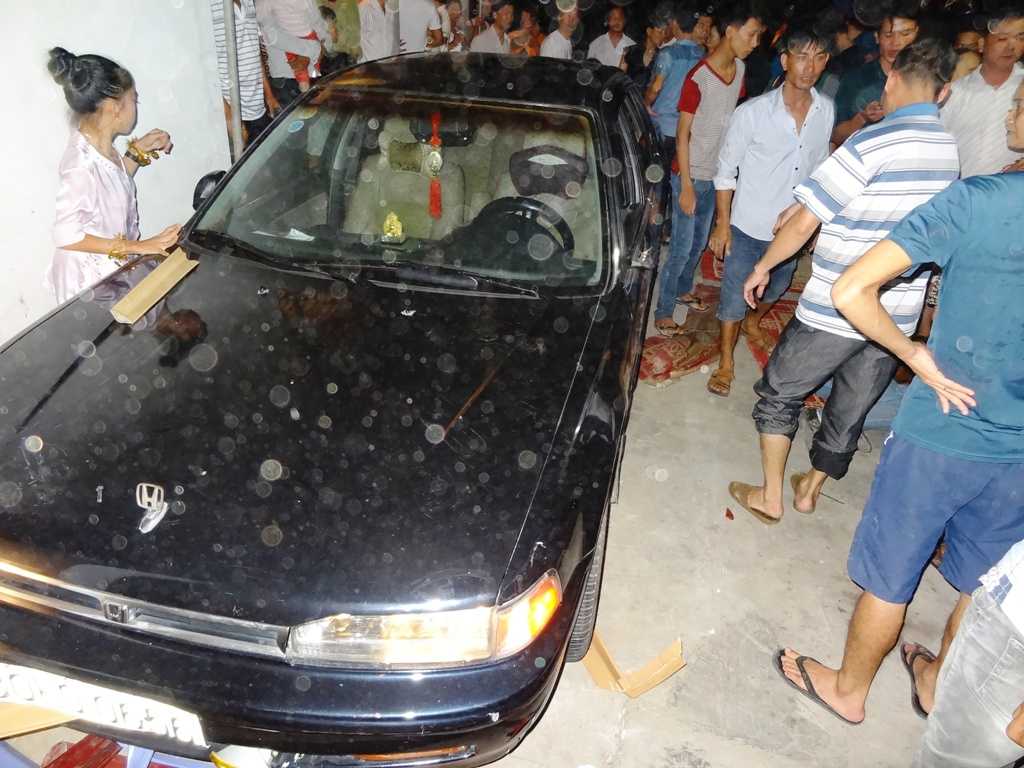 Tiếp đó, xe ô tô lại rú ga húc tan hàng ghế phía sau, kéo lê người vào gầm xe. Dừng lại một lát, chiếc xe "điên" tiếp tục rú ga lao thẳng vào nơi hàng chục người đang đứng xem trung thu.