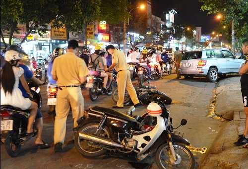 Sau tai nạn, lực lượng CSGT Q.Gò Vấp nhanh chóng có mặt xử lý hiện trường làm rõ nguyên nhân.