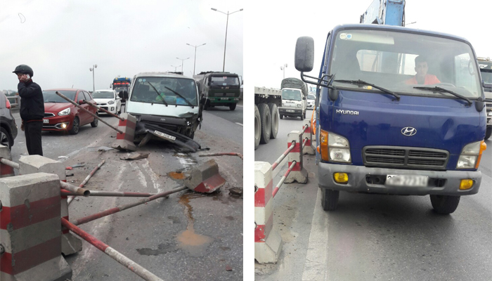 Khi đi đến cột đèn 41, chiếc xe này tông vào dải phân cách giữa làn xe máy và ô tô. Vụ tai nạn xảy ra vào giờ cao điểm, chiếc xe gặp nạn chiếm mất một làn đường nên các phương tiện qua đây gặp nhiều khó khăn, giao thông ùn tắc kéo dài.