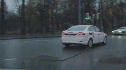 Ô tô kéo lê vòi bơm xăng đi khắp phố